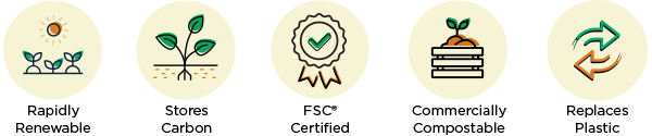 World Centric offers a complete NoTree® product line made with bamboo paperboard and lined with plant-based plastic which includes hot cups, cold cups, containers and bowls. We also introduced bamboo cutlery made of 100% FSC® certified bamboo with no linings or fillers, in 2023. See all of our bamboo products here.
