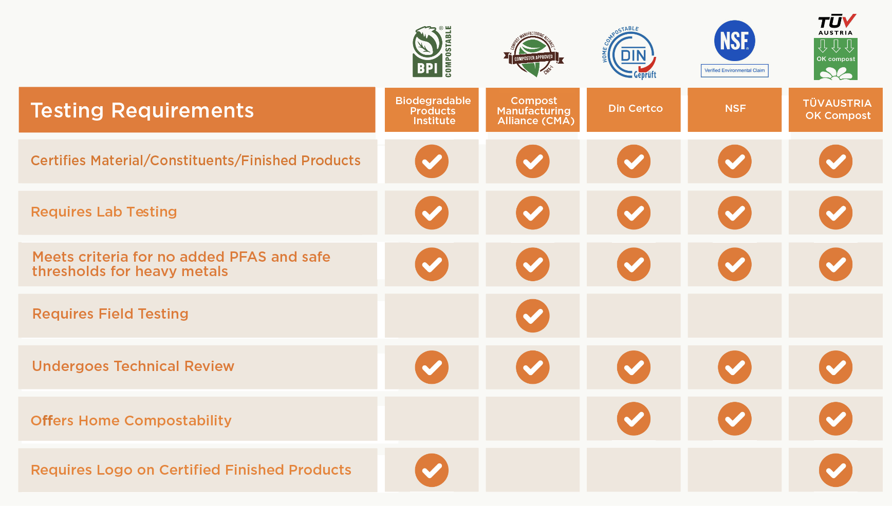 Let’s delve deeper into the topic by providing a comparison of third-party compostability certifiers and their processes and requirements. This exploration aims to unravel the intricacies of compostability in the industry and offers insights int how we can navigate the complexities of certification and identify products with confidence and clarity.